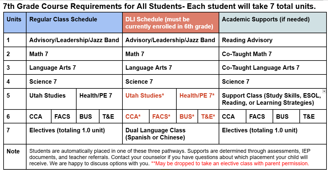 7th Grade Registration Information
